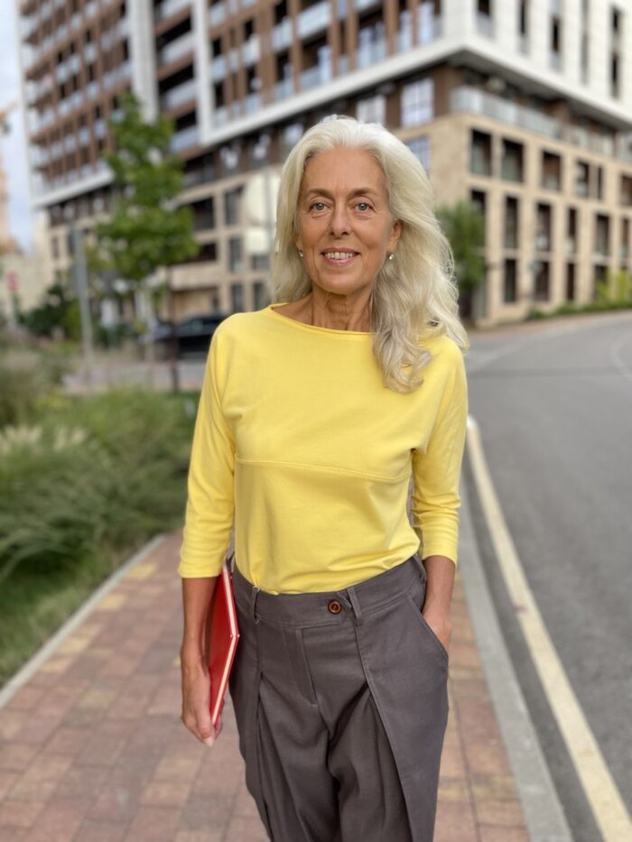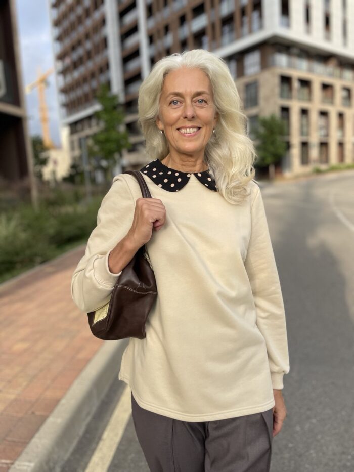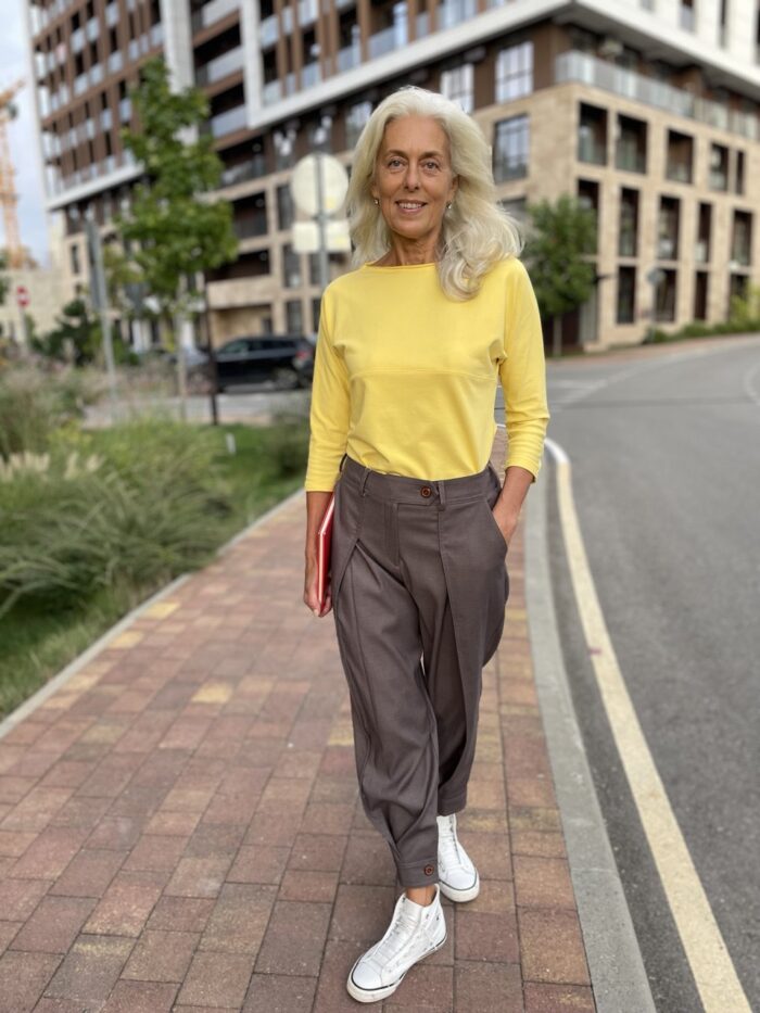 Лонгсливы — важная часть базового гардероба женщины 40+. В этой модели я сделала акцент на силуэте: вырез, подчёркивающий грудь, и правильная посадка. Но ткань — не менее важна.