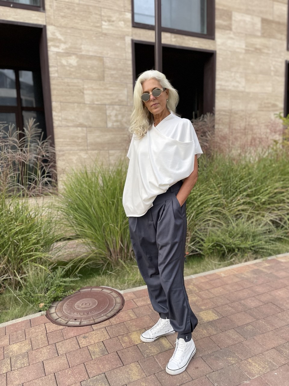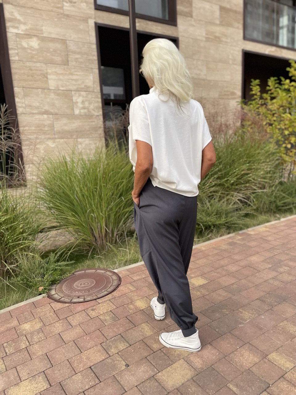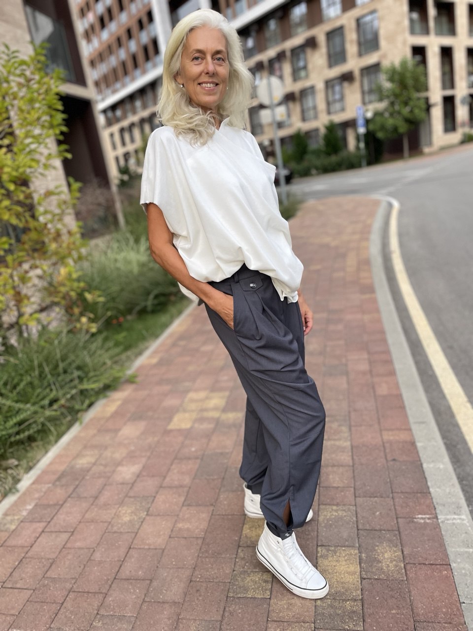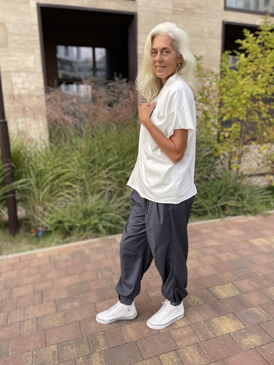 Ткань — плотная поливискоза, приятная к телу, не мнётся и хорошо держит форму. Это идеальный материал для брюк женских на каждый день, особенно если вам важно выглядеть ухоженно без лишних усилий.