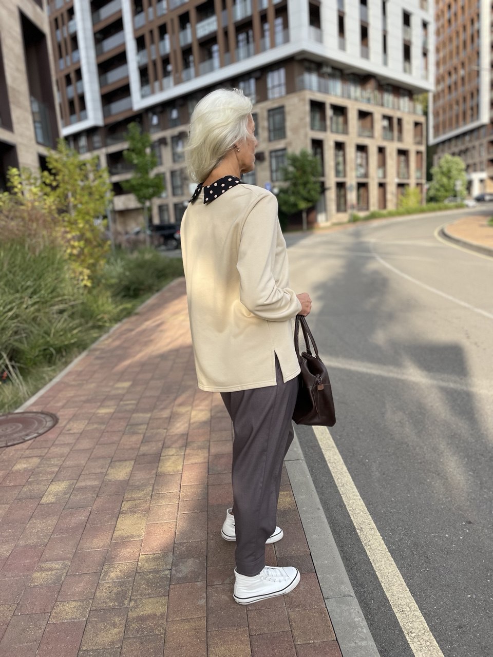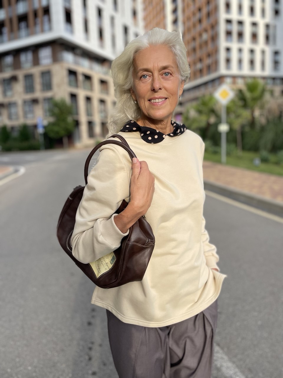 Именно таким получился наш новый женский свитшот с воротником, он же — удлинённая толстовка и худи женское без капюшона. Модель оверсайз, но аккуратная, не утяжеляющая силуэт, с продуманной посадкой и эффектом «минус 5 лет» за счёт деталей.